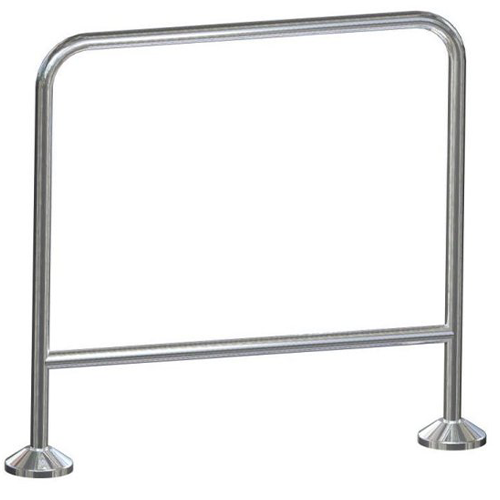 Ausführung CrNi-Stahl-Rundrohr 40 mm, strichmattiert, Eckstücke gebogen, Höhe 1.000 mm.