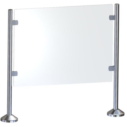 Seitliche Steher aus 40 mm CrNi-Stahl V2A strichmattiert, mit 10 mm Einscheiben-Sicherheitsglas in Glashaltern. H 1000 mm.