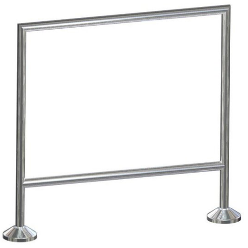 Ausführung CrNi-Stahl-Rundrohr 40 mm, strichmattiert, Eckstücke in Gehrung, Höhe 1.000 mm.