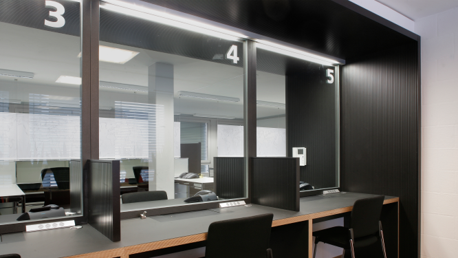 - High-security pass-throughs made of safety glass and steel