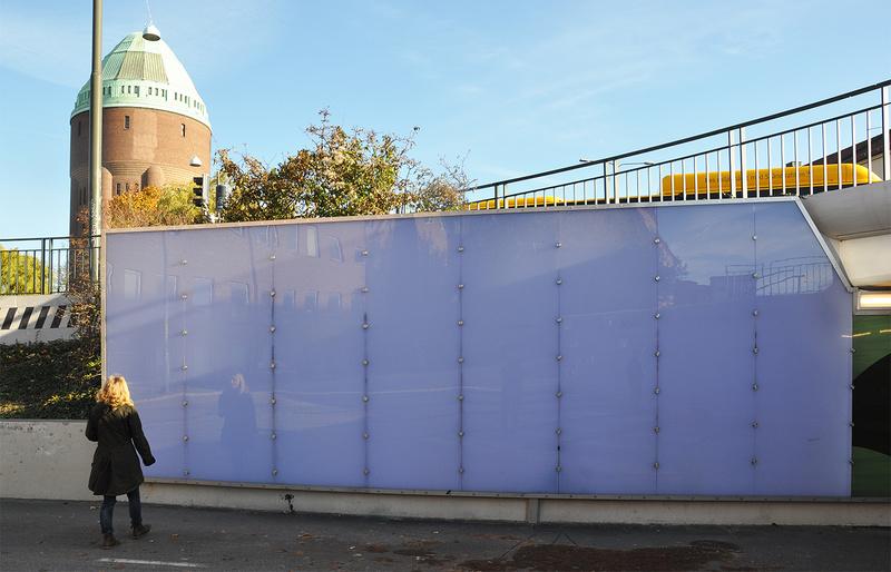 A color-impregnated or printed Hammerglass panel with LED lighting creates an attractive focal point in the darkness at night. Variable LEDs make the effect even more spectacular. An illuminated pedestrian underpass is not only visually appealing, but also provides a safer environment and increased security.