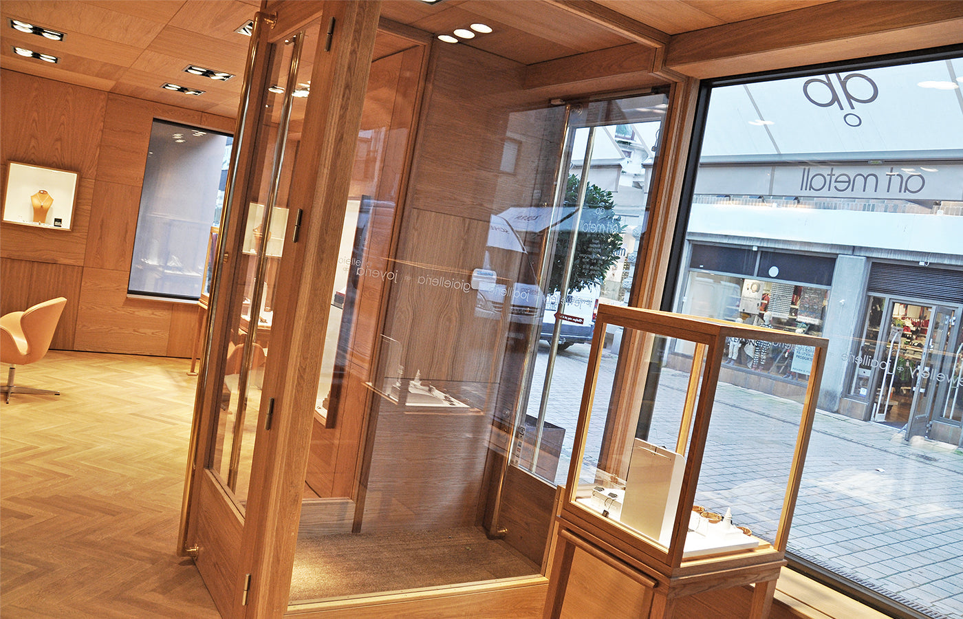 Is space limited, but security requirements are very high? A Hammerglass security entrance takes up little space but offers great benefits. Hammerglass is installed in specially designed security entrances made of materials such as wood, steel, and aluminum, which blend in with the rest of the store and can be integrated into small spaces. The security entrance consists of a small booth into which the customer enters through the first door, which must then be closed before the next door can be opened. The entrance allows control over who is allowed to enter the store and is particularly effective in preventing multiple people from entering at the same time. This is an investment in a safer working environment that benefits both customers and employees.