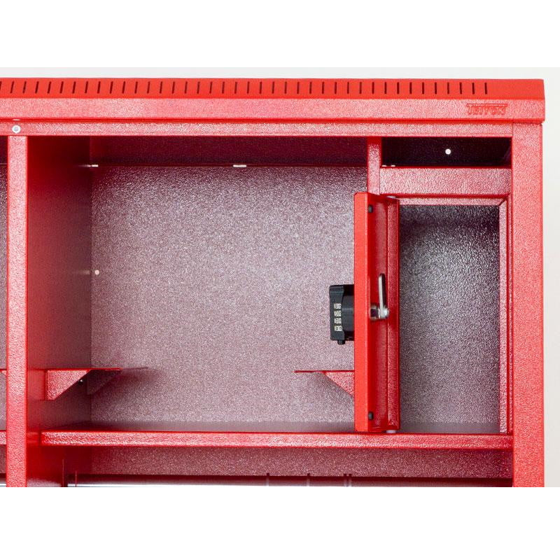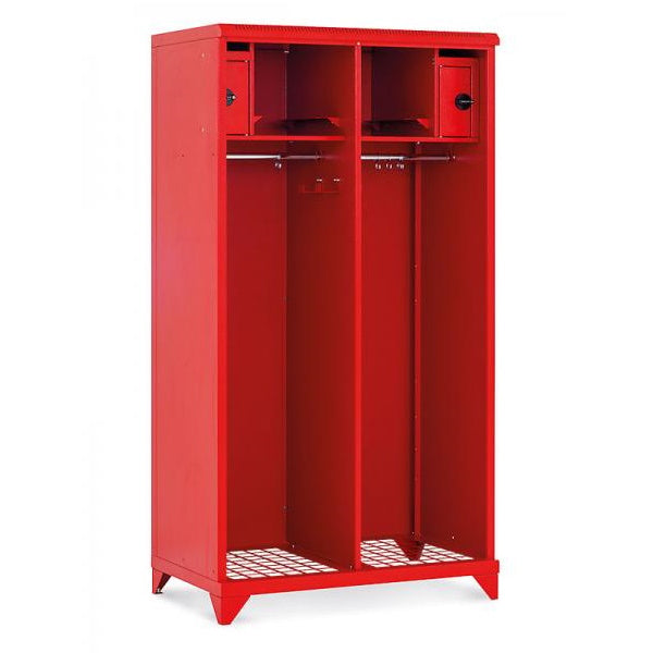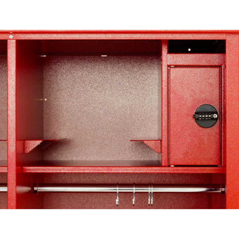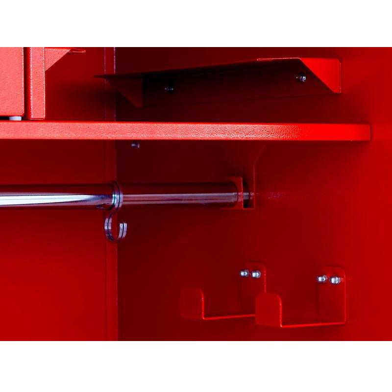 This open cabinet allows instant access to equipment and features a striking RAL 3000 metallic red finish. It measures 1780 x 1000 x 600 mm (height x width x depth), and features two separate compartments for optimal organization.