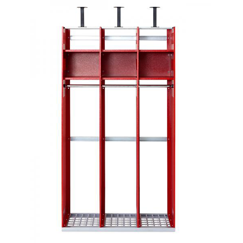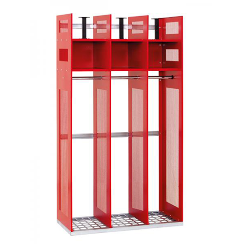 Our wall-mounted specialty cabinets for fire and rescue services feature a ready-to-assemble construction made from 1 and 1.3 mm thick sheet steel for durability and stability. The open cabinet allows immediate access to clothing and equipment during operations.