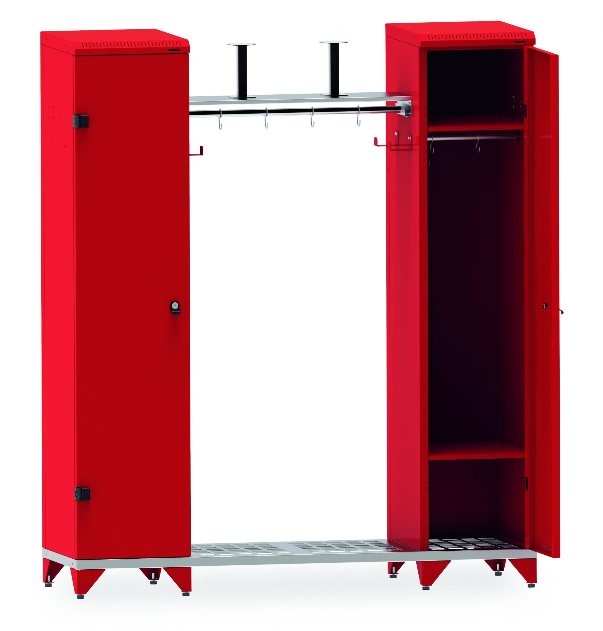 The IPE-X1 fire department cabinet is the ideal solution for quickly accessing emergency clothing whenever it's needed. Its welded construction, made of 1 mm thick sheet steel, ensures stability and durability. With its two compartments and a height of 1780 mm, a width of 1600 mm, and a depth of 500 mm, the cabinet offers ample space for the secure storage of clothing and equipment.