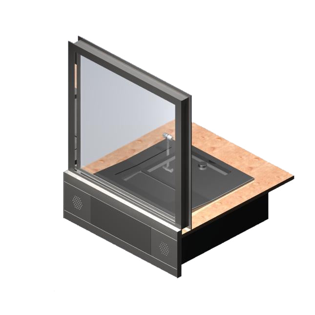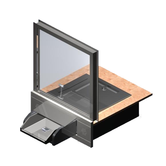This device was developed for flush installation in facades and partition walls. It is primarily used as a car counter in banks, gas stations, and pharmacies, or as a check-in counter in concierge offices and weighing stations. An intercom system for communication between inside and outside is integrated into the device.