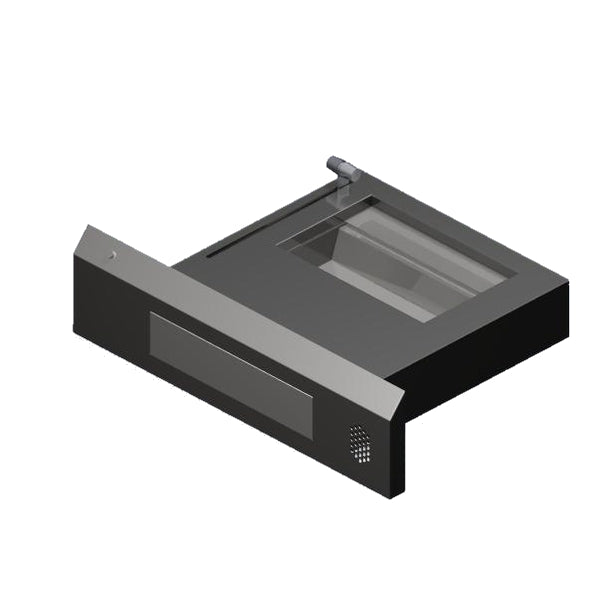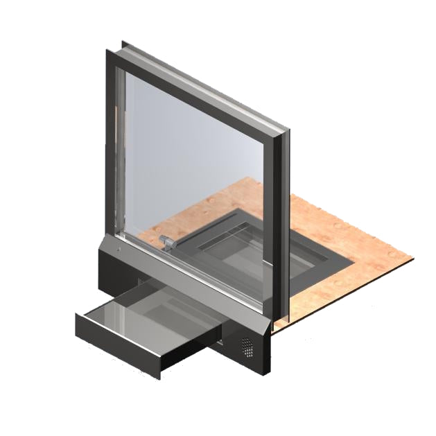 This device was developed for flush installation in facades and partition walls. It is primarily used in porter's lodges and night ticket counters indoors. An intercom system for communication between inside and outside is integrated into the device.