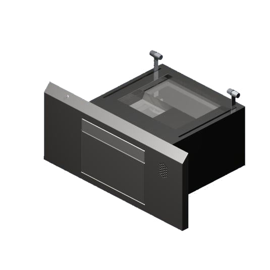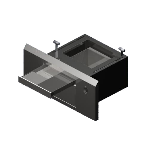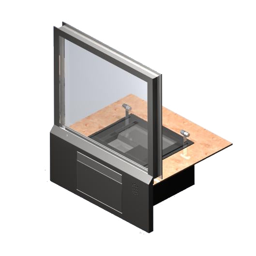 This device was developed for flush installation in facades and partition walls. It is preferably used in porter's lodges and as a night switch. z.B. Used at gas stations and pharmacies, both indoors and in covered outdoor areas, when larger items or goods are to be dispensed in addition to money and receipts. An intercom system for communication between inside and outside is integrated into the device.