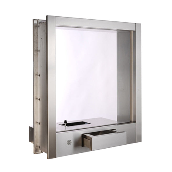 Das Komplettelement 7054 ist ein vormontiertes Fensterelement mit fassadenbündiger Durchreiche (Modell 54) und integrierter Gegensprechanlage – ausgelegt für sichere Übergaben im Innen- und Aussenbereich, z. B. an Gerichten, Botschaften oder in Justizvollzugsanstalten. Automatische Verriegelung in Endlagen sorgt für Manipulationsschutz, die Freigabe erfolgt ausschliesslich bedienerseitig. Wartungsfrei im Betrieb.