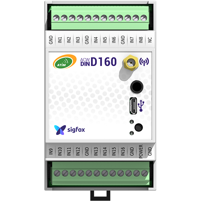 Cette version compacte au format DIN permet la surveillance de l'état de 16 entrées en mode tout ou rien. Comparé aux technologies actuelles, l'ACW-DIND160 peut être connecté aux réseaux LoRaWAN, offrant ainsi une large gamme d'applications, même en zones isolées (excellente pénétration des matériaux).