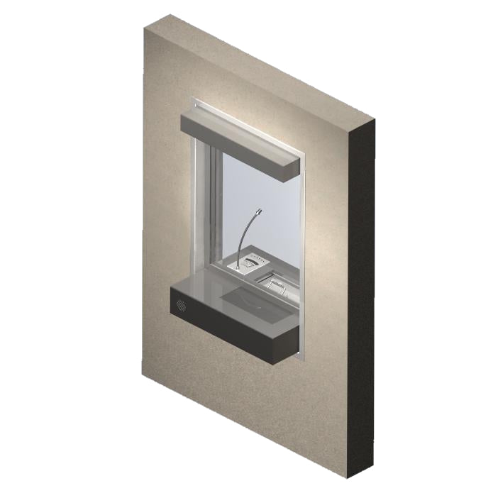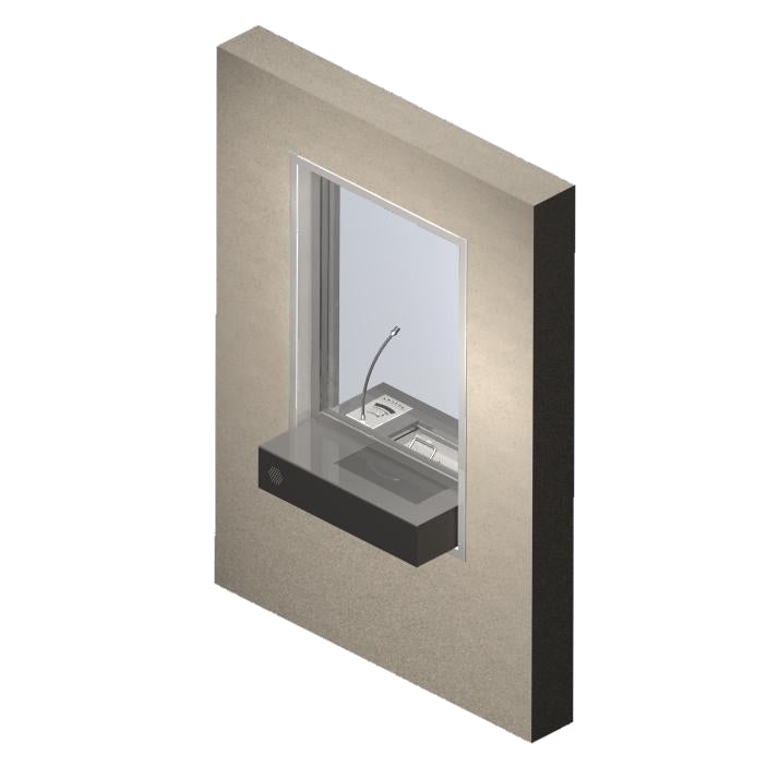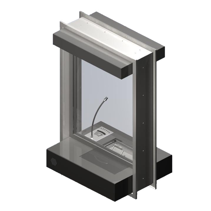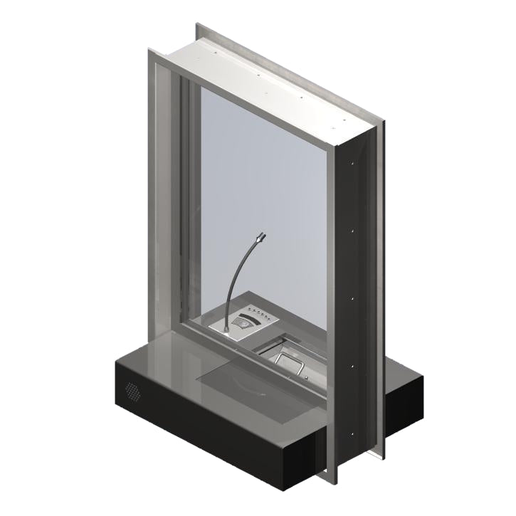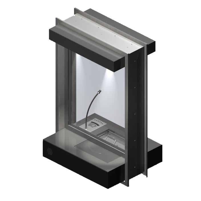 Ce comptoir intérieur/extérieur P8011 prêt à installer est entièrement équipé et conçu pour être installé dans une ouverture de mur plâtrée. Il peut servir de caisse enregistreuse, de comptoir de nuit, de billetterie ou de réception.