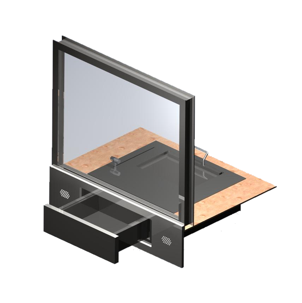 Ce dispositif a été conçu pour une installation encastrée dans les façades et les cloisons. Il est utilisé à l'intérieur comme à l'extérieur dans les loges de concierges, les établissements pénitentiaires, les ambassades et les douanes. Sa hauteur intérieure de 100 mm permet également le passage de dossiers de grande taille.
