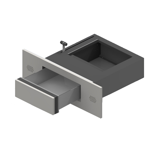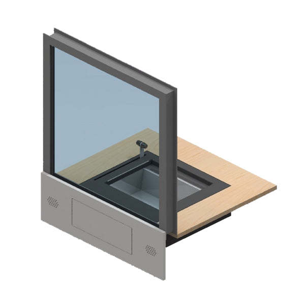 Ce guichet a été conçu pour une installation encastrée dans les façades et les cloisons. Il est principalement utilisé dans les loges de conciergerie et les caisses de nuit en intérieur. Grâce à sa hauteur intérieure de 100 mm, ce guichet de façade permet le passage de dossiers A4 de grande taille. Un système d'interphone est intégré pour la communication entre l'intérieur et l'extérieur.
