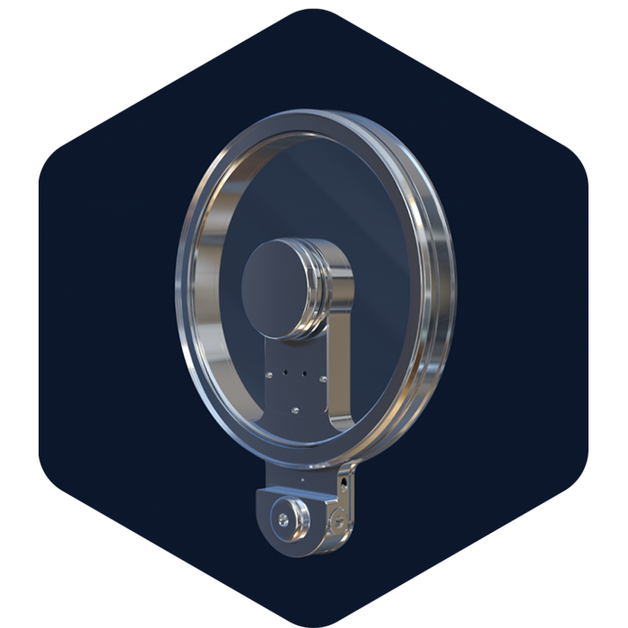 Les hublots rotatifs VISIPORT offrent aux utilisateurs une vue directe et claire du processus de production, à condition qu'ils soient combinés avec les écrans de sécurité des machines SICURTEC®.