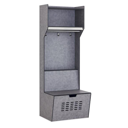 L'équipement comprend deux étagères, trois crochets doubles et un compartiment de rangement pratique sous le siège, disponible dans les deux versions.