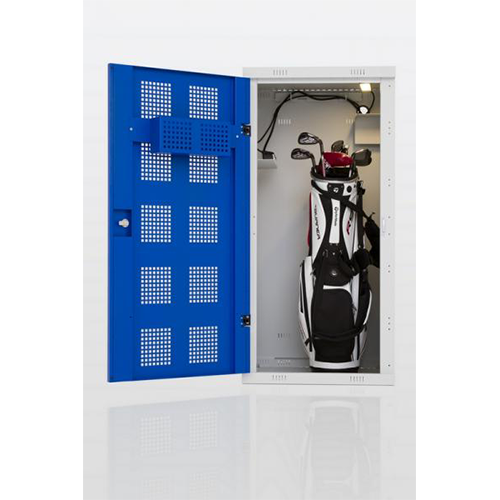 La porte perforée assure une ventilation optimale, tandis que les serrures fiables et de haute qualité garantissent un rangement sécurisé de votre équipement de golf. L'armoire de golf est disponible en trois dimensions : 1250 x 550 x 550 mm, 1250 x 825 x 1100 mm et 1250 x 825 x 550 mm.