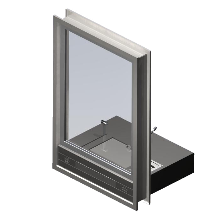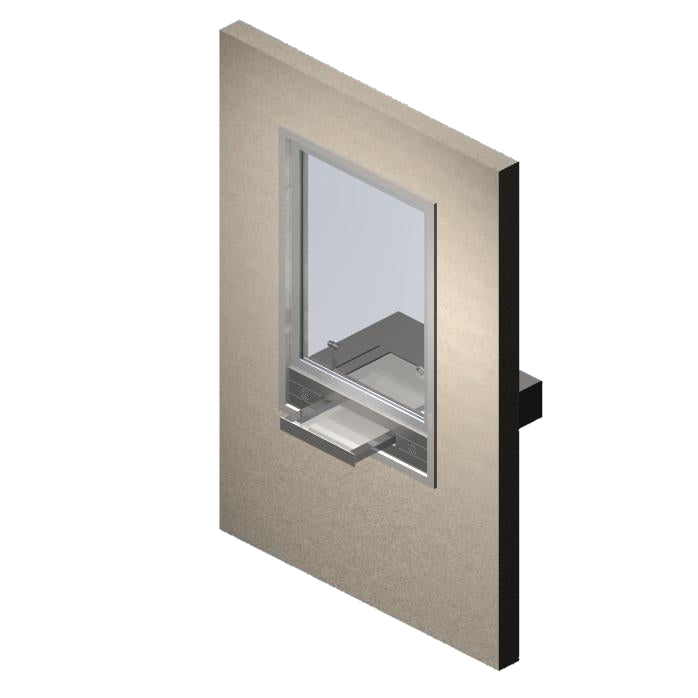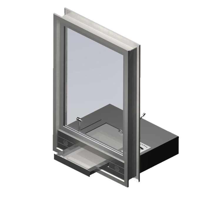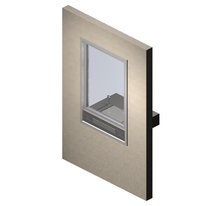 Questo bancone pronto per l'installazione è completamente attrezzato e progettato per l'installazione in un'apertura a parete completamente intonacata. Può essere utilizzato come cassa, banco concierge, bancone notturno, biglietteria, farmacia o reception.