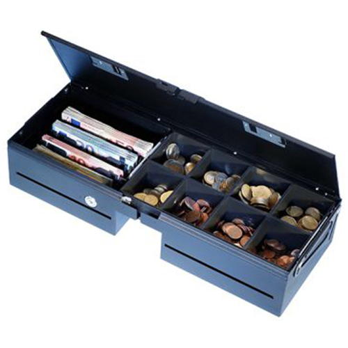 Questo inserto per registratore di cassa KE 46-7-D offre ampio spazio di archiviazione nonostante le sue dimensioni compatte. Due slot integrati nella parte anteriore consentono l'inserimento di ricevute e banconote a cassetto chiuso. Dopo aver completato la procedura di pagamento, il KE 46-7-D può essere bloccato nel cassetto, rimosso e riposto nella cassaforte.