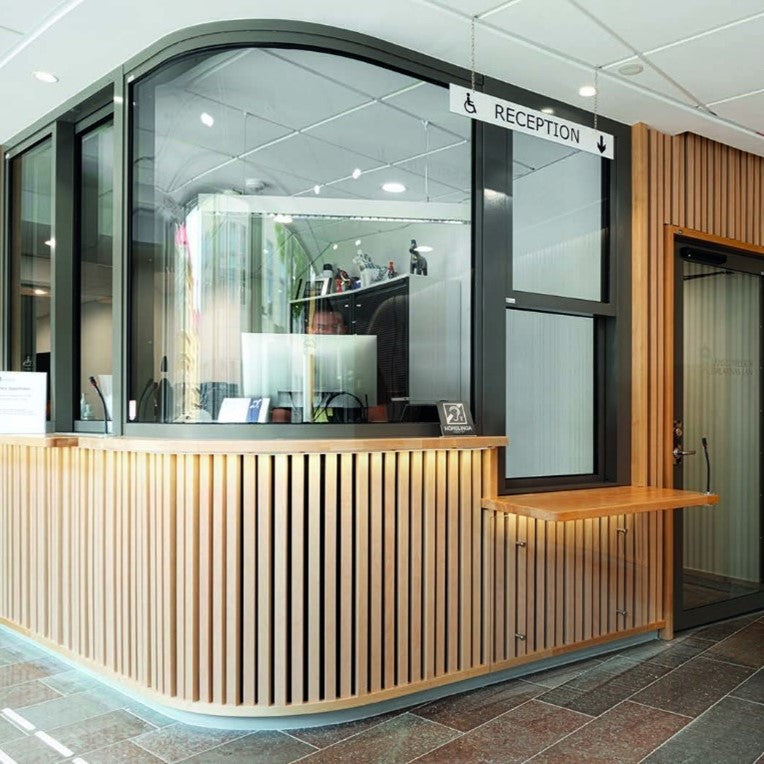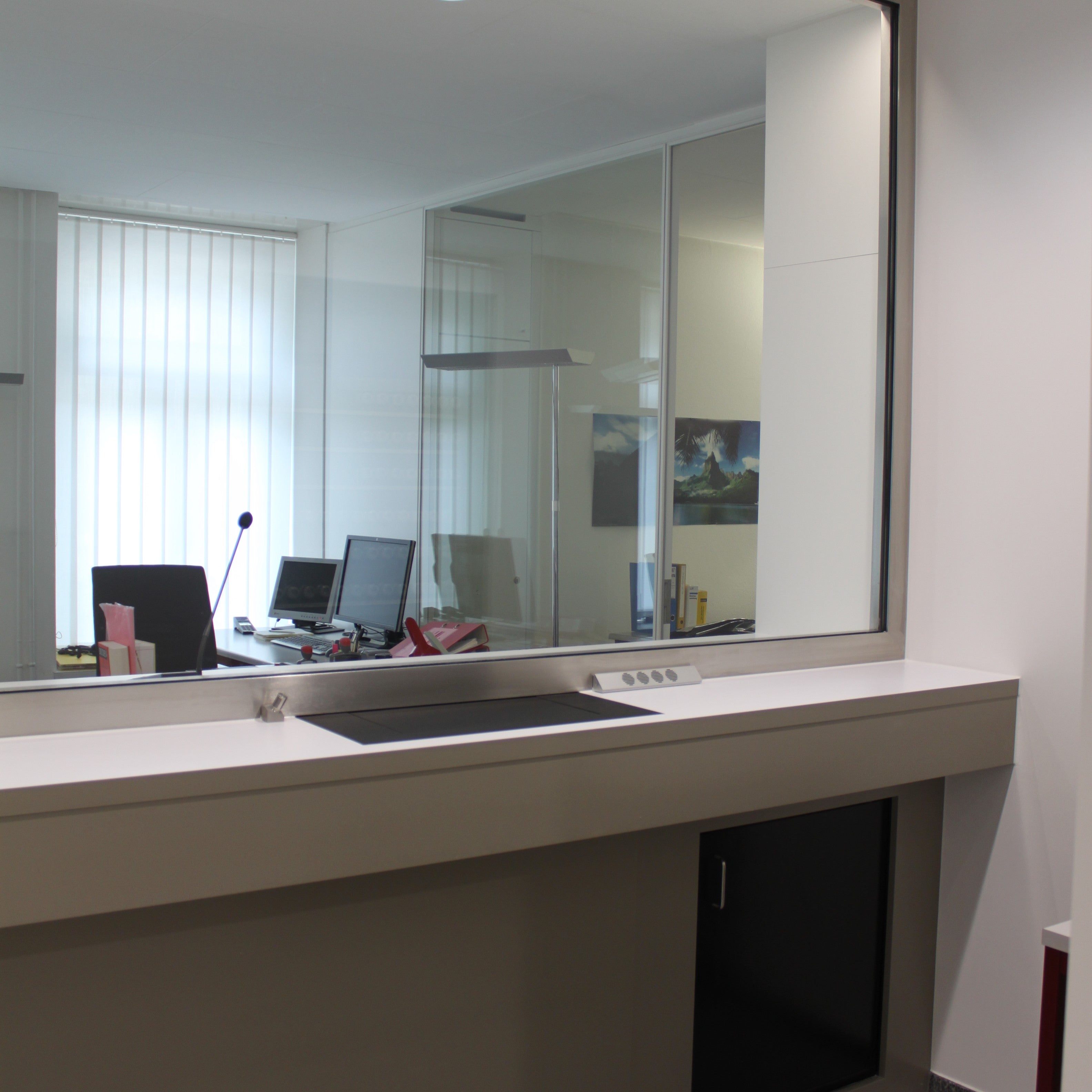 Je nach Wunsch entsteht so ein Fassadenschalter oder ein Thekenschalter. Bundes-, Kantons- sowie Stadtverwaltungen und Gemeinden vertrauen auf die Sicherheit unserer massgefertigten Lösungen.