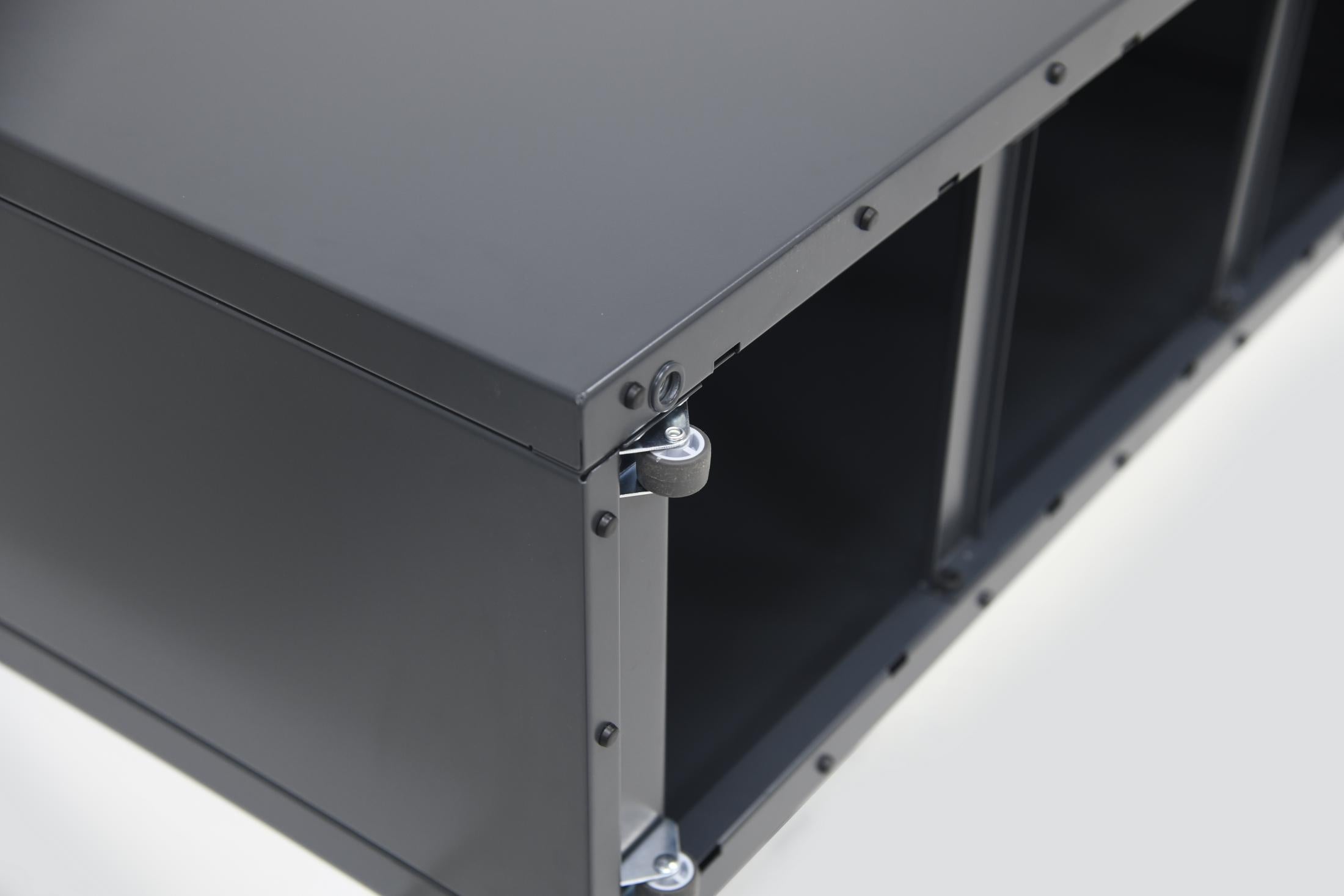 - Der Schrank muss auf einem ebenen Boden aufgestellt werden. Kleine Unebenheiten werden durch die Nivellierfüsse ausgeglichen. Wir empfehlen, die Metallmöbel an die Wand zu befestigen.