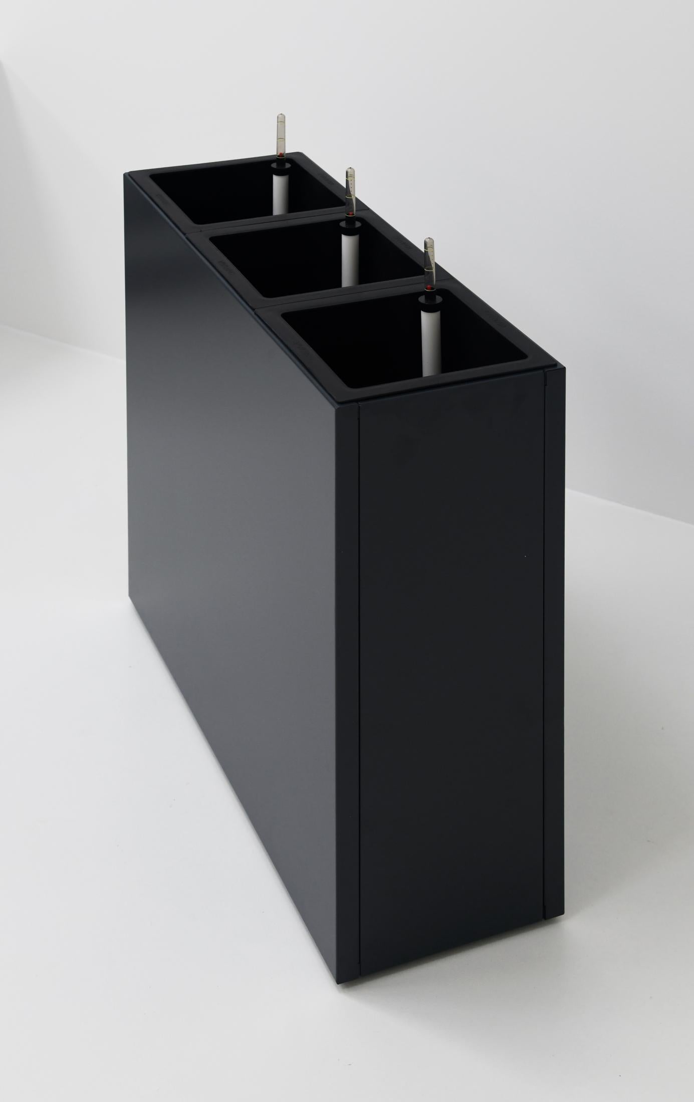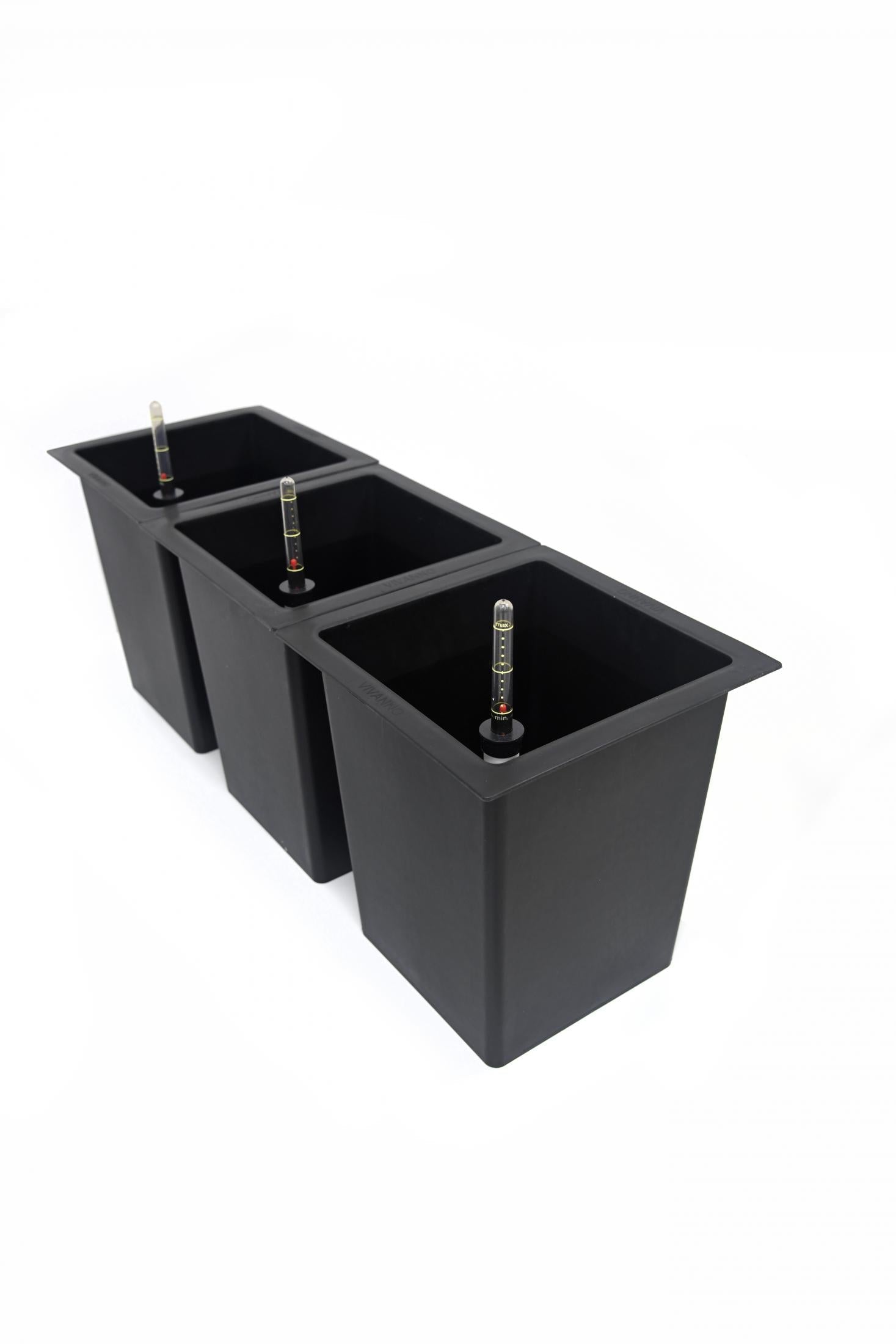 Der Tritón-Design Blumentopf enthält drei Kunststoff-Innenschalen, die mit einem effektiven Selbstbewässerungssystem ausgestattet sind. Das System sorgt für eine optimale Versorgung Ihrer Pflanzen mit Wasser, was den Pflegeaufwand reduziert und das Pflanzenwachstum fördert.