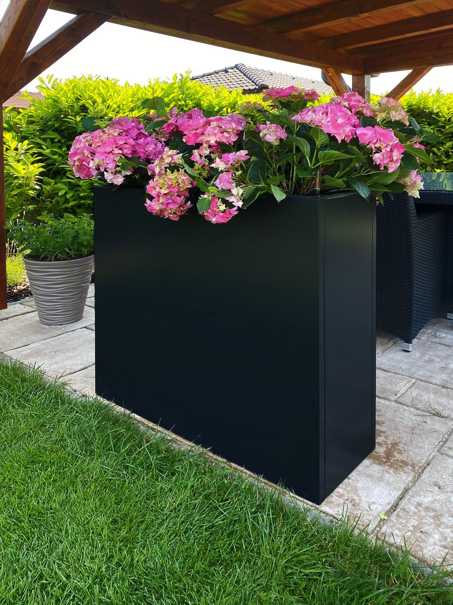Durch die integrierten Räder und Stellfüsse kann der Blumentopf flexibel eingesetzt werden – als optische Barriere, Raumteiler oder Dekorationselement. Er ist ideal für den Einsatz in privaten Gärten, auf Terrassen oder in gewerblichen Räumen.