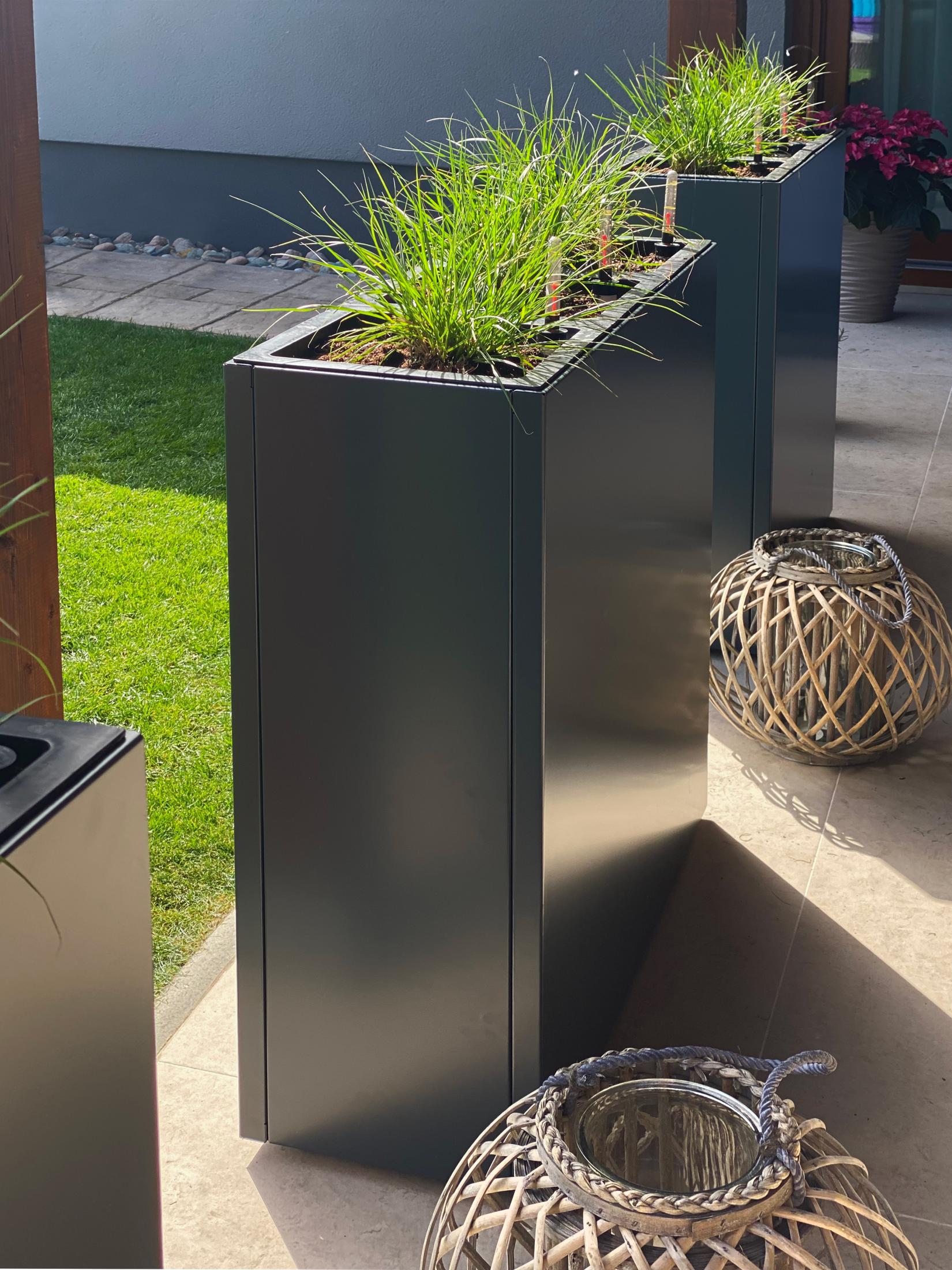Der Tritón-Design Blumentopf aus robustem, 1 mm dickem verzinktem Stahl mit anthrazit-farbener Pulverbeschichtung ist perfekt für den Innen- und Aussenbereich geeignet. Dank seiner Witterungsbeständigkeit und Frostresistenz behält er seine Farbe und Stabilität bei verschiedenen Wetterbedingungen.